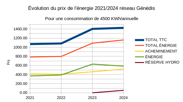 Consommation 4500 KWh/an | Frs | % | % depuis 2021 |