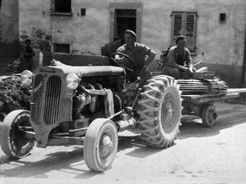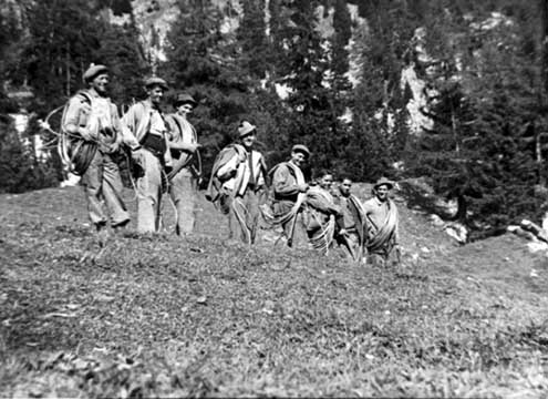 - Transport de personnes et matériel. Probablement à la deuxième épingle de la route des Vérines avec l’arrête du Lion D’or en arrière-plan.