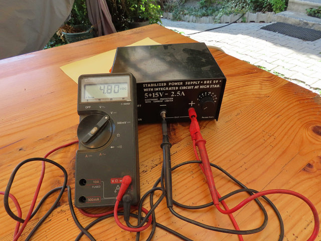Pour les essais, ne disposant pas de pile 4.5 V en bon état, j’utilise une alimentation stabilisée de 4.8 V.