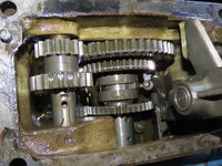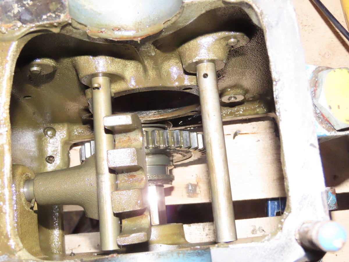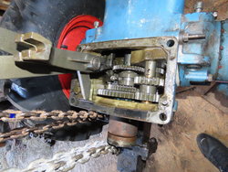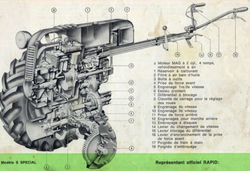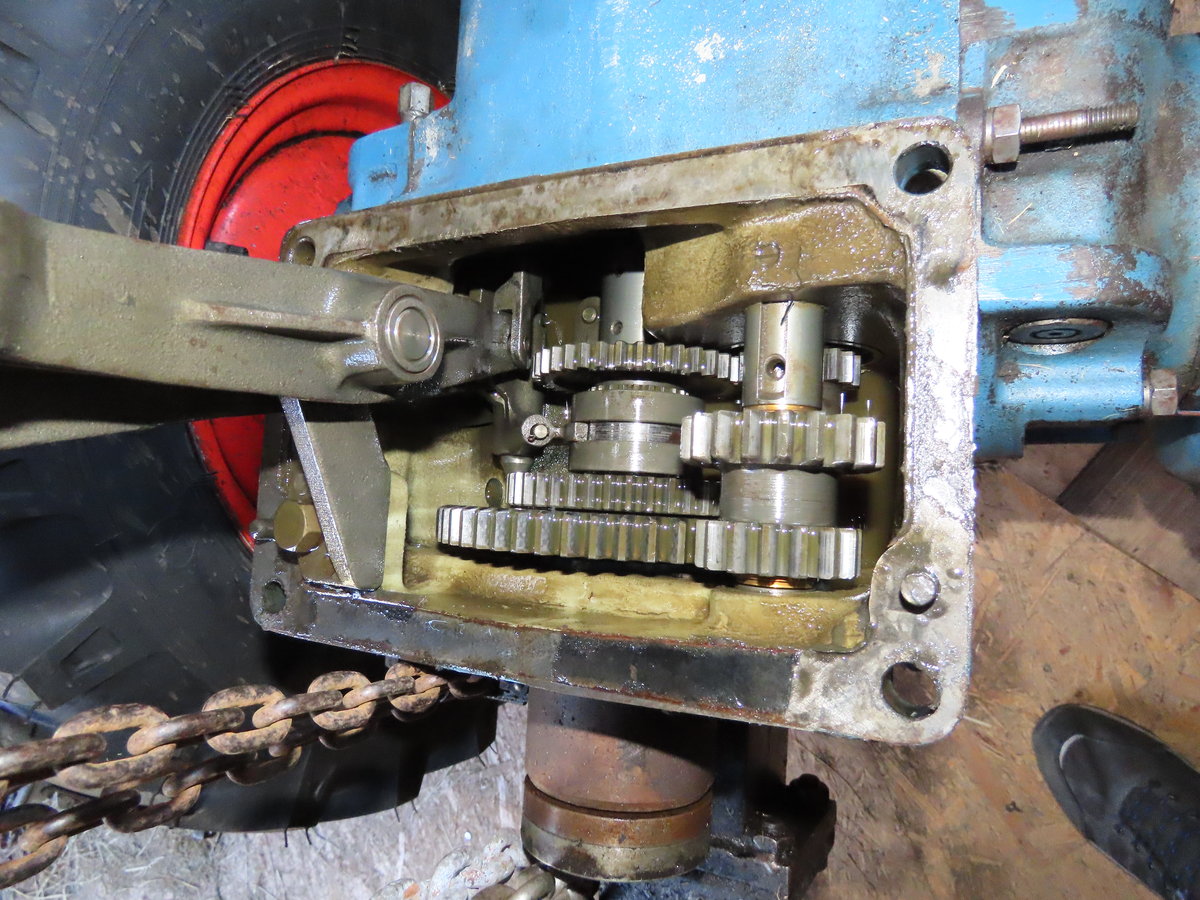 - Boite de vitesse inférieure avec à droite les pignons marche avant arrière, en bas la prise de force.